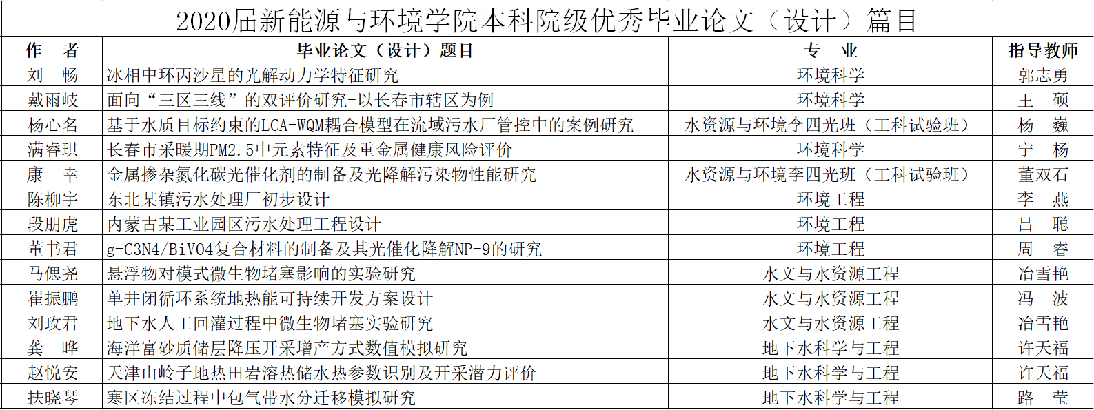 2020届一色 本科院级优秀毕业论文(设计)篇目