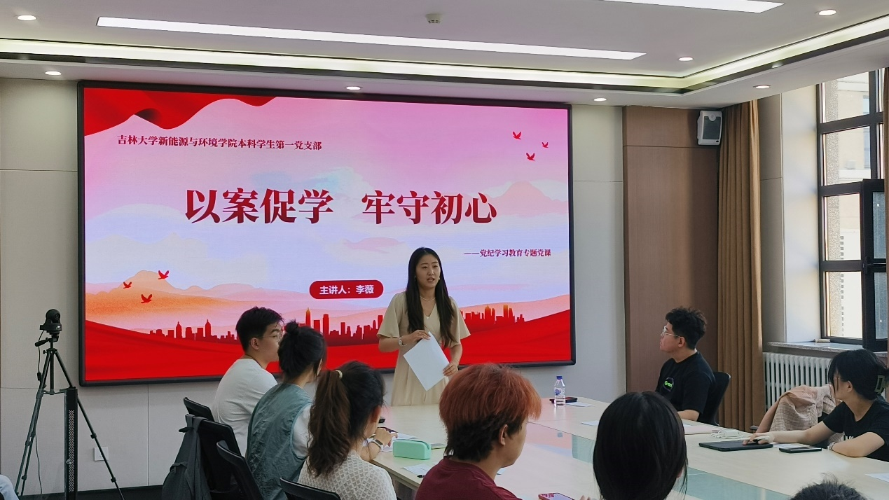 环境科学系研究生第二党支部书记刘昊源带领党员集中学习新修订的《中国共产党纪律处分条例》背景与修订概况、特点、要点内容。通过此次学习,支部党员体会到新时代的学生党员应当在思想上画出红线,筑牢底线,坚决遵守党的规章纪律,用实际行动践行初心使命,让党纪学习教育内化于心,外化于行。