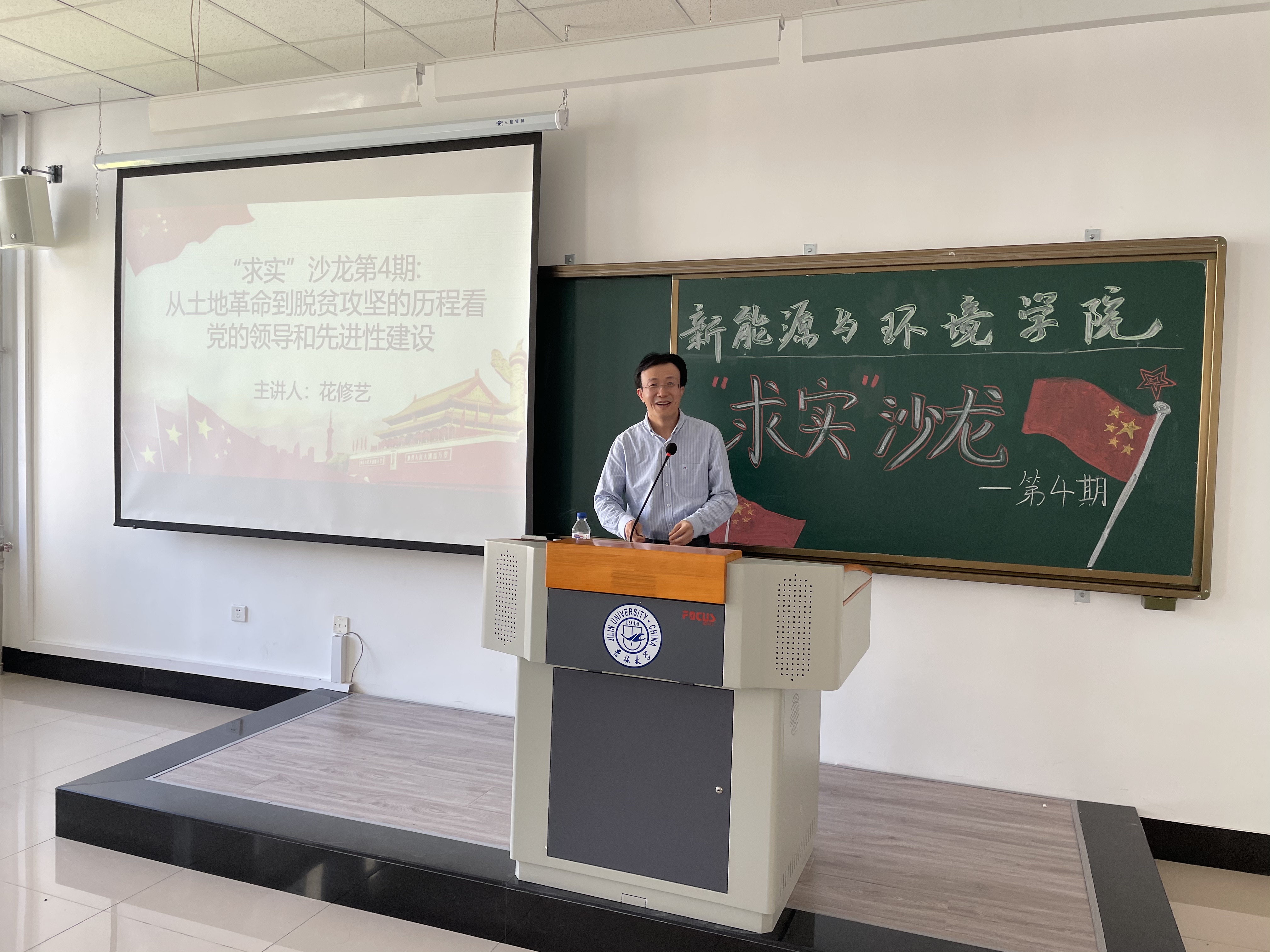 花修艺教授从土地革命的土改到现在的农村脱贫攻坚,结合党史谈到了党的先进性、党的宗旨和马克思主义的中国化。