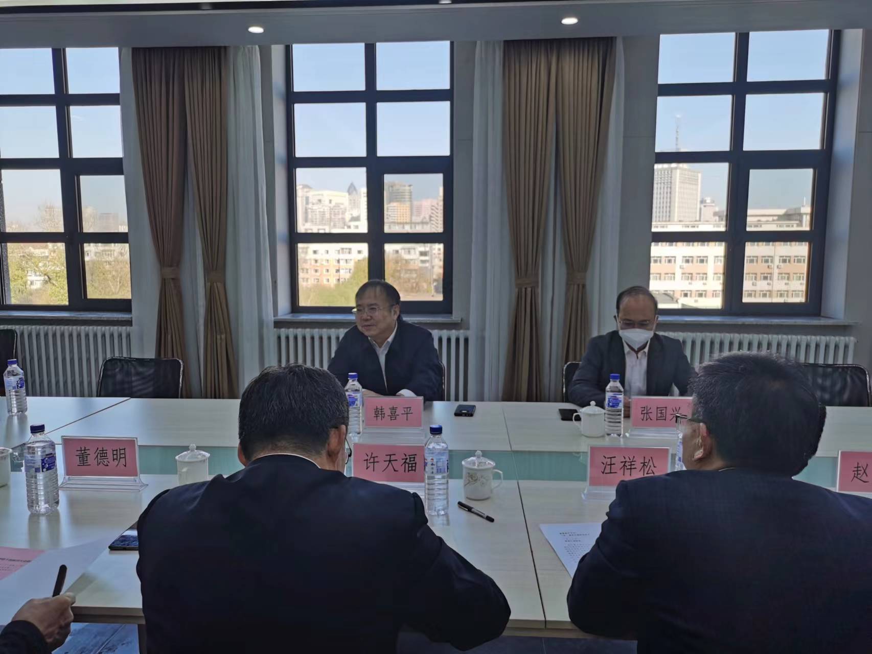 在前卫北区理化楼544会议室召开了干部聘任会议,宣布学校对许天福教授的聘任决定。学校党委副书记韩喜平,党委常委、组织部部长张国兴出席会议。学院党政领导班子全体成员、党委委员、纪委委员,学术委员会、学位评定分委员会、教学委员会主要负责人以及各系、行政科室主要负责人、教工党支部书记等参加了会议。会议由学院党委书记汪祥松主持。