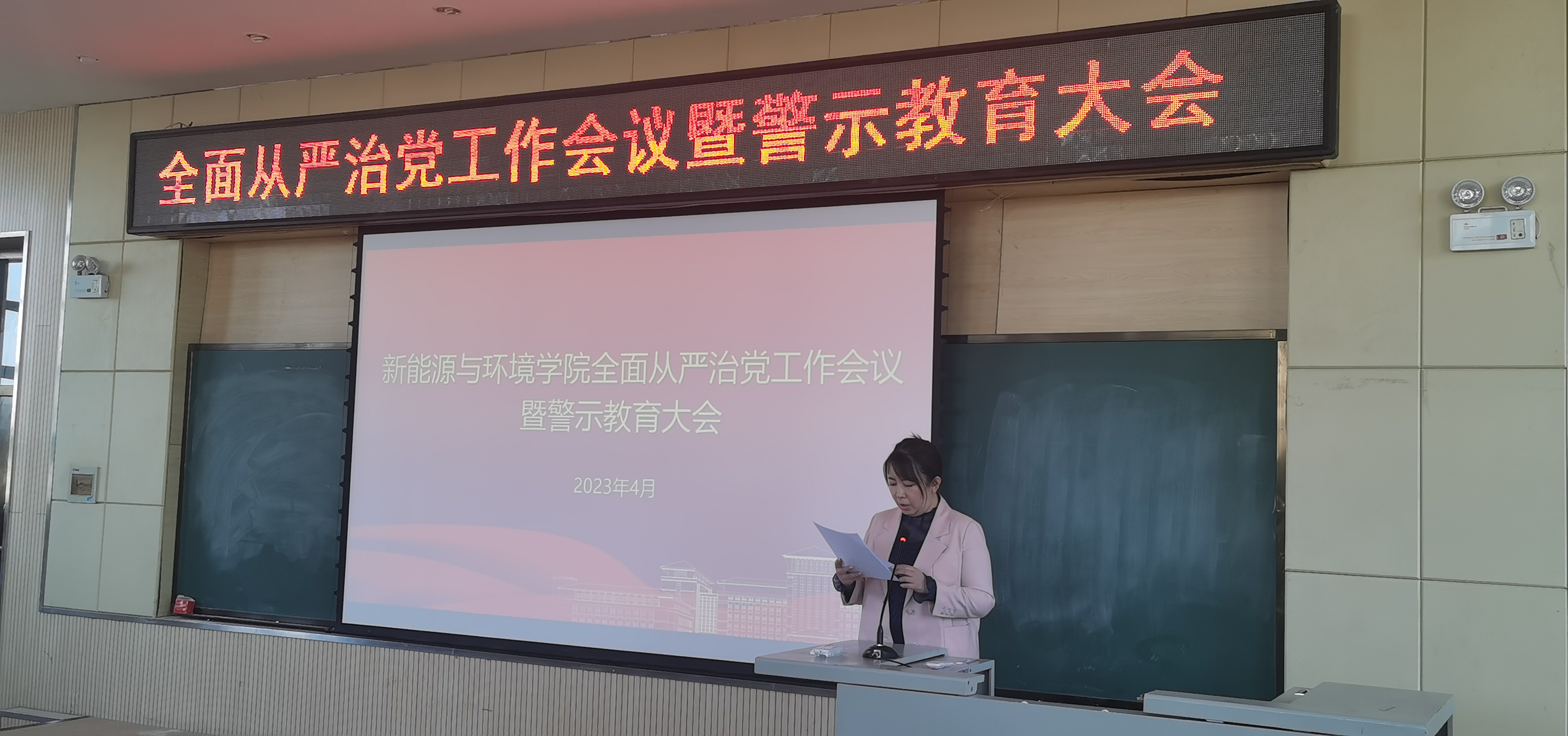 4月21日下午,一色 在北区理化楼第一报告厅召开全面从严治党工作会议暨警示教育大会,学院全体教职工参加了本次会议。会议由学院党委副书记兼副院长、纪委书记吴哲主持。